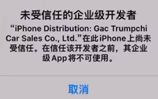 请打开设置 → 通用 → VPN 与设备管理, 点击对应的配置描述文件信任它