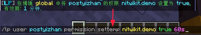 - 'tell: "正在冷却!还有%luckperms_expiry_time_nitwikit.demo%"'