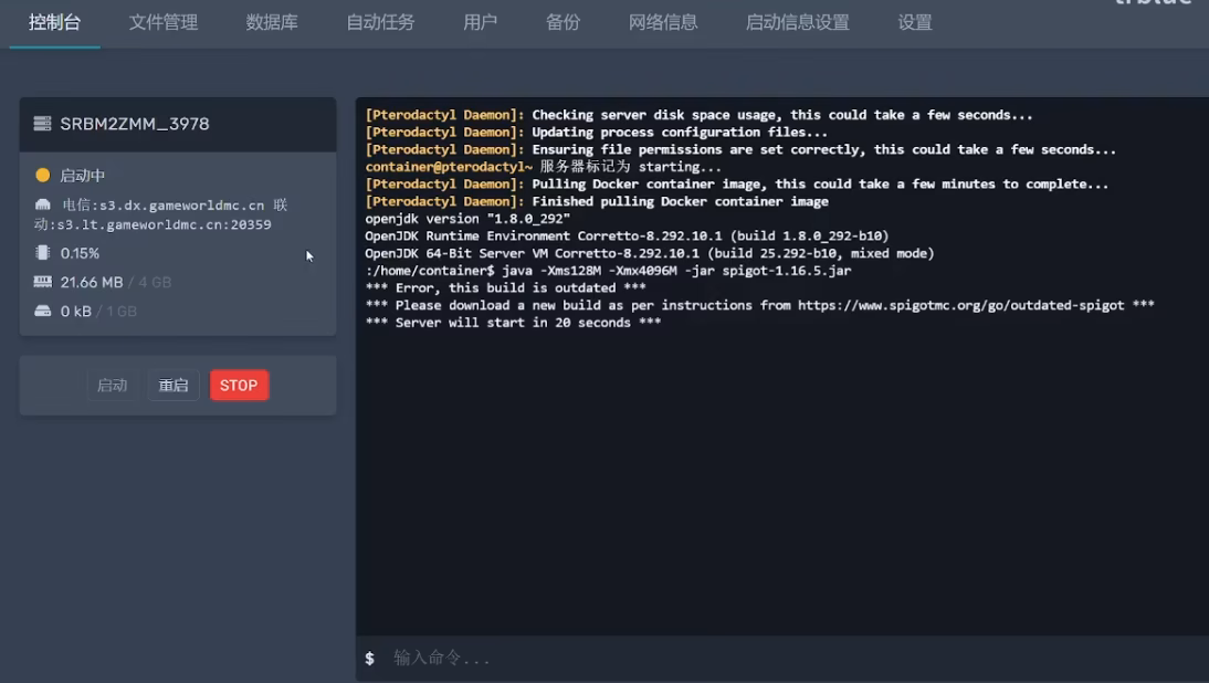相当简单无脑的开服方式,大多会有一键开服之类的选项,要自己配置的东西少,但限制太多